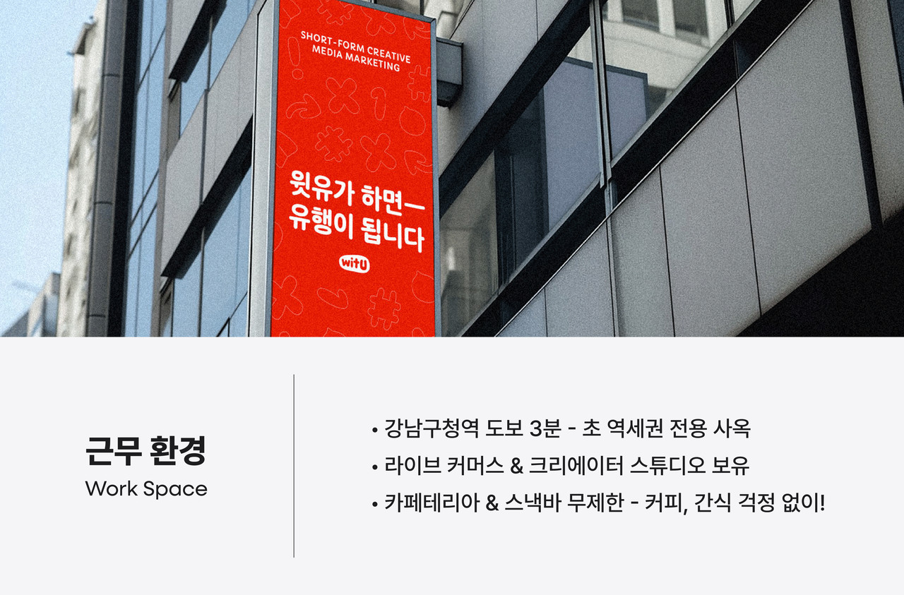 숏폼 시장은 빠르게 성장하고 있으며, 우리는 변화하는 환경에 맞춰 더 나은 업무 환경을 만들어가고 있습니다.다양한 복지를 통해 직원들이 최고의 퍼포먼스를 낼 수 있도록 지원합니다.
