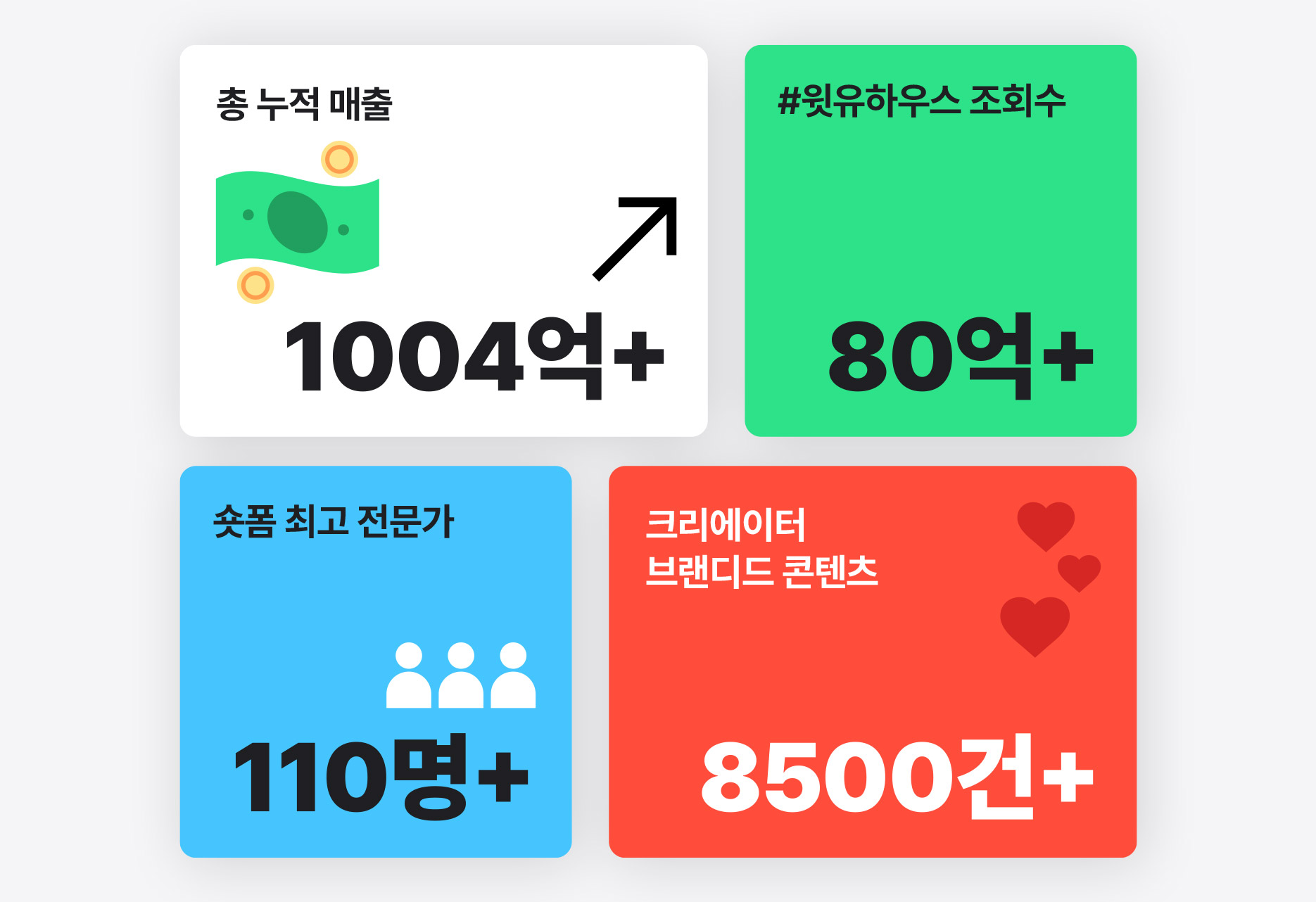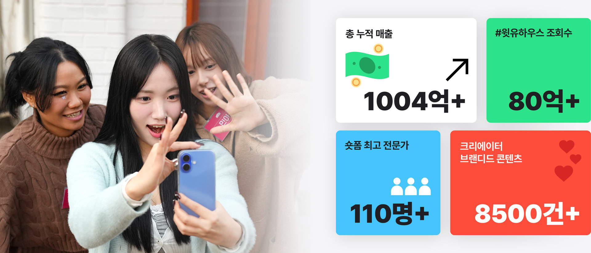 윗유는 국내 최초의 숏폼 전문 기업으로 시작해,누적 매출 1,000억원을 달성하여 국내 최고의 숏폼 기업으로 자리 잡았습니다.